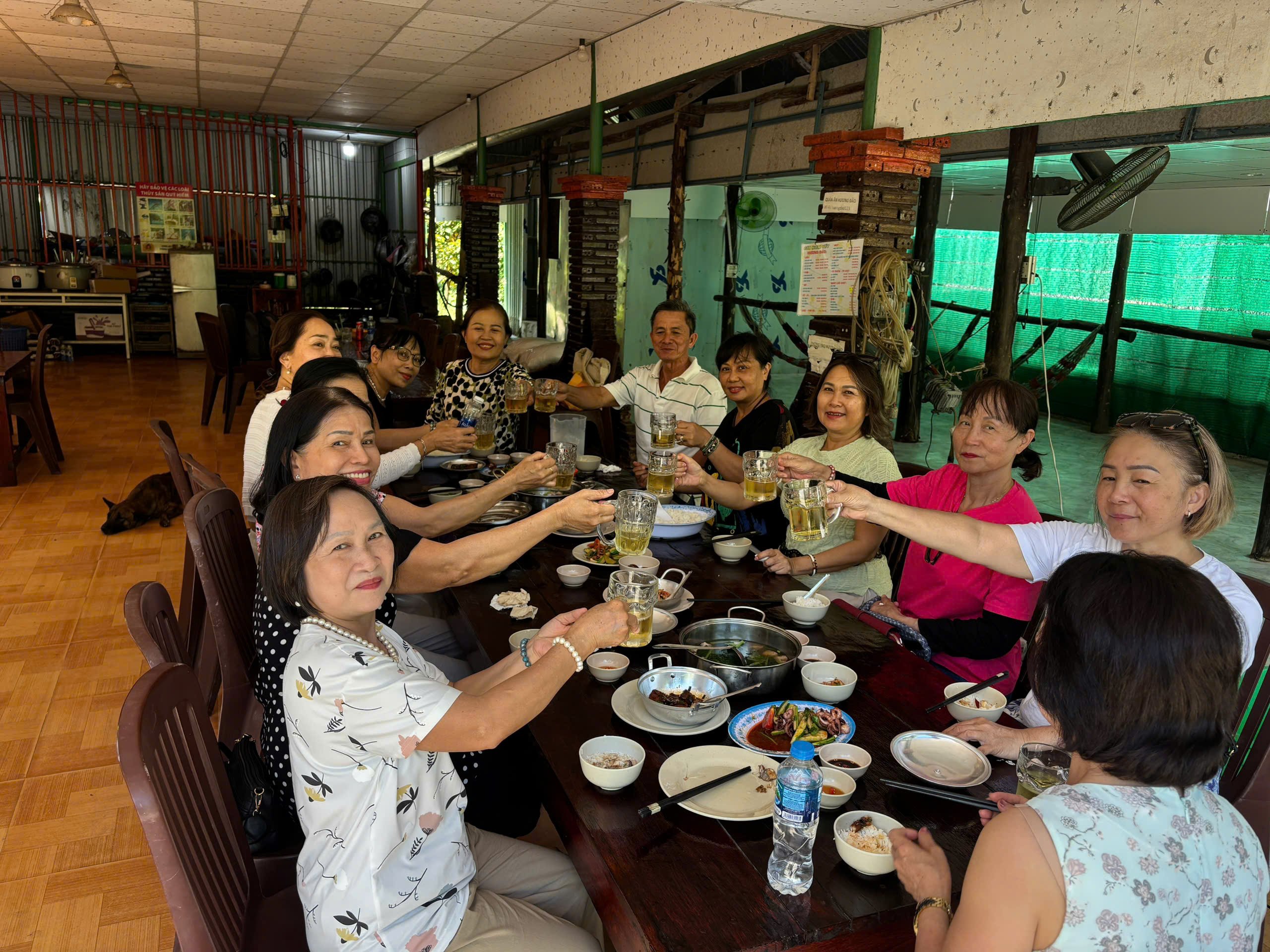 11:30 Đoàn về lại nhà hàng vệ sinh và chuẩn bị cơm trưa đã chuẩn bị sẵn.