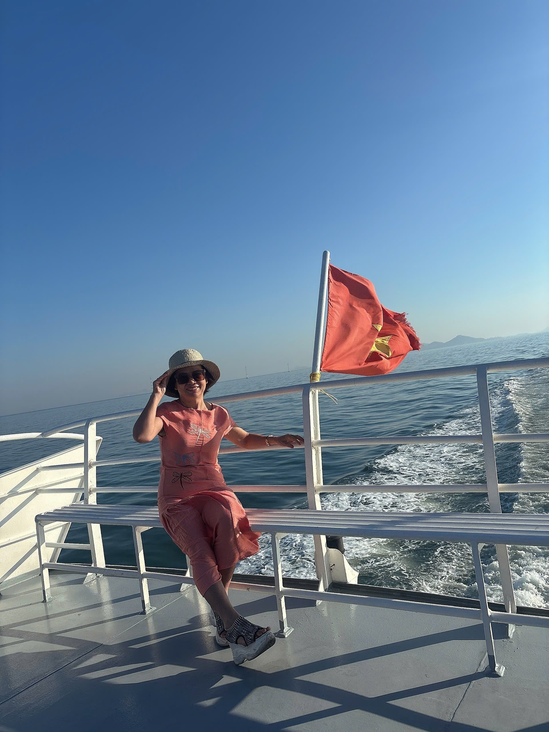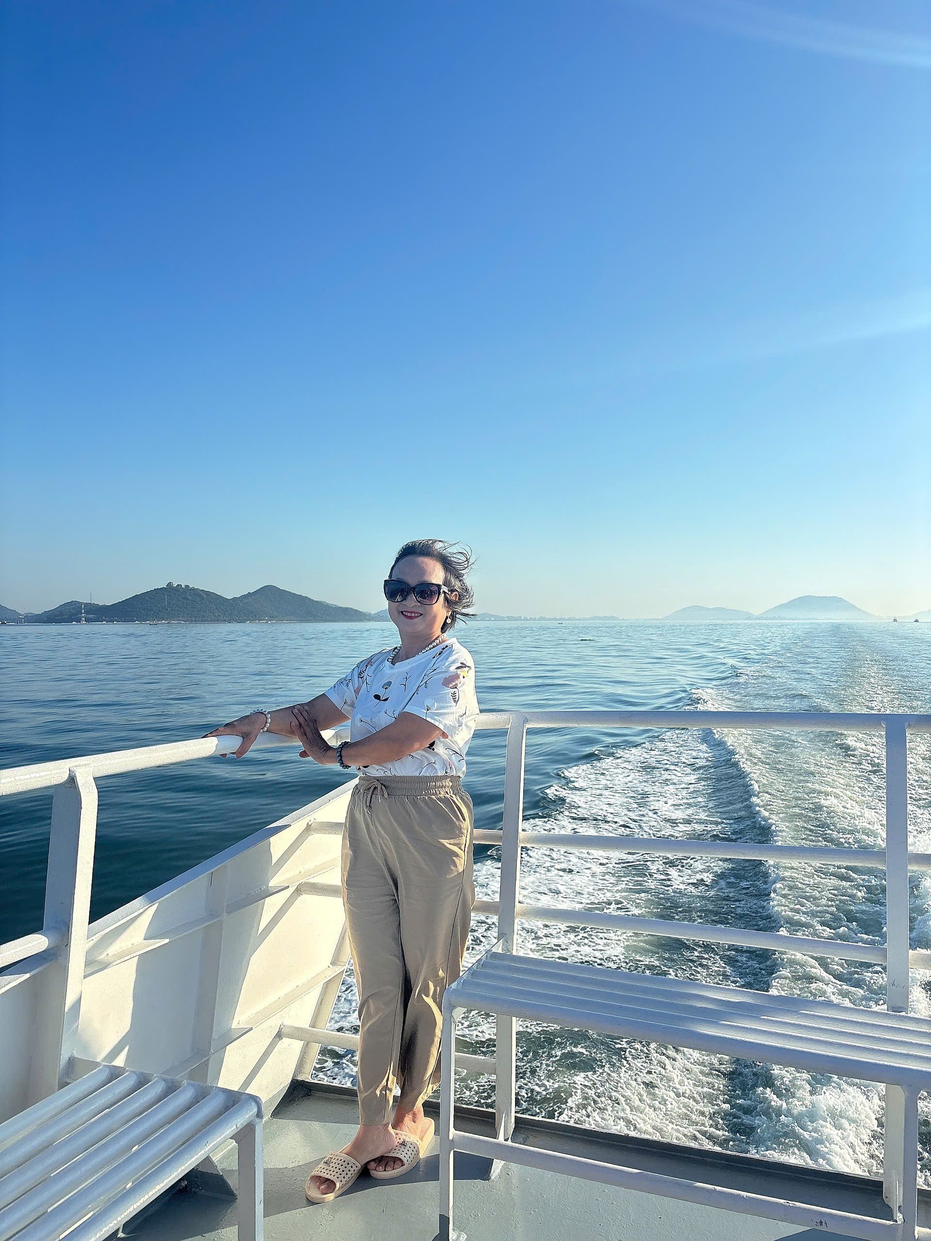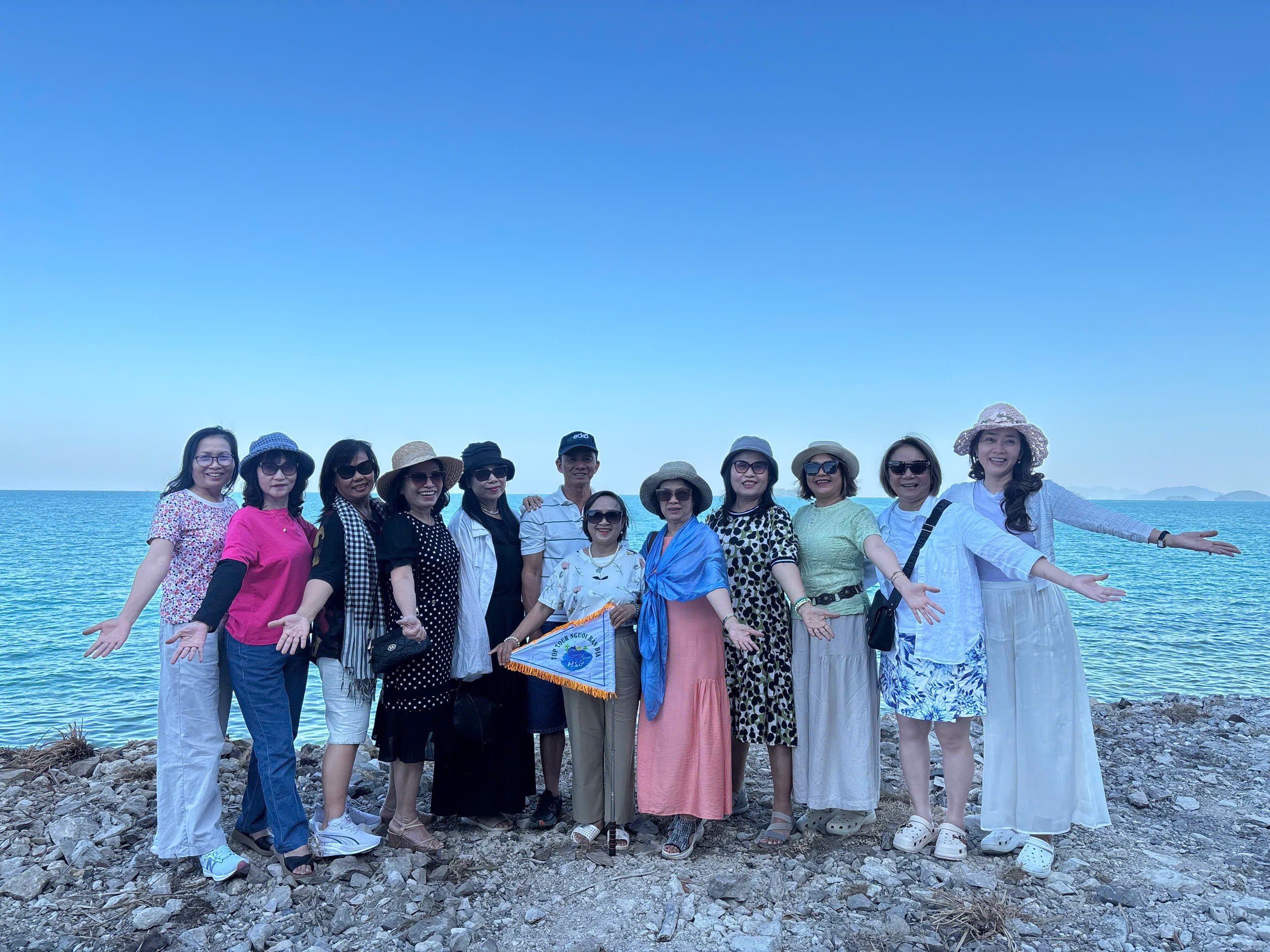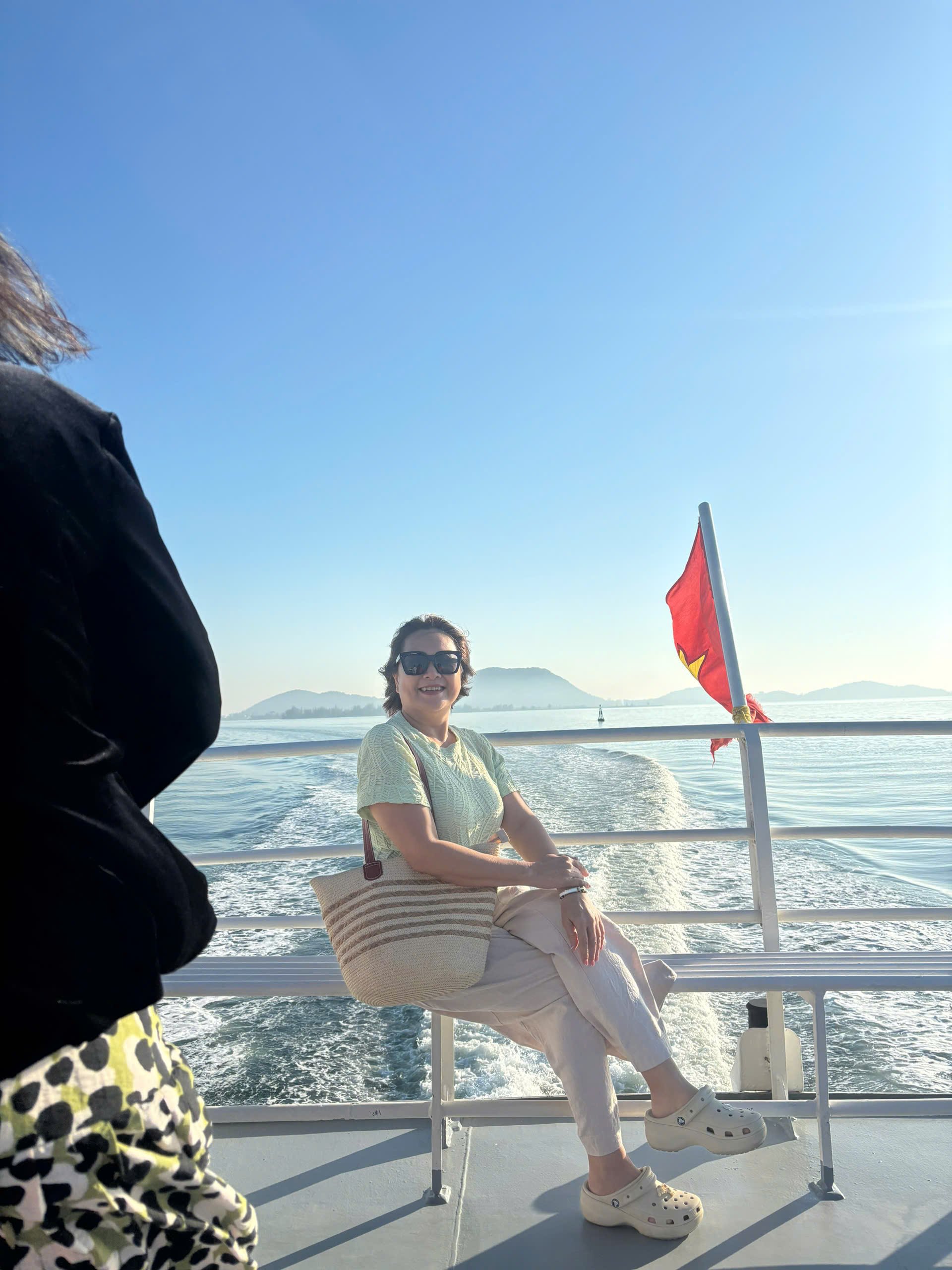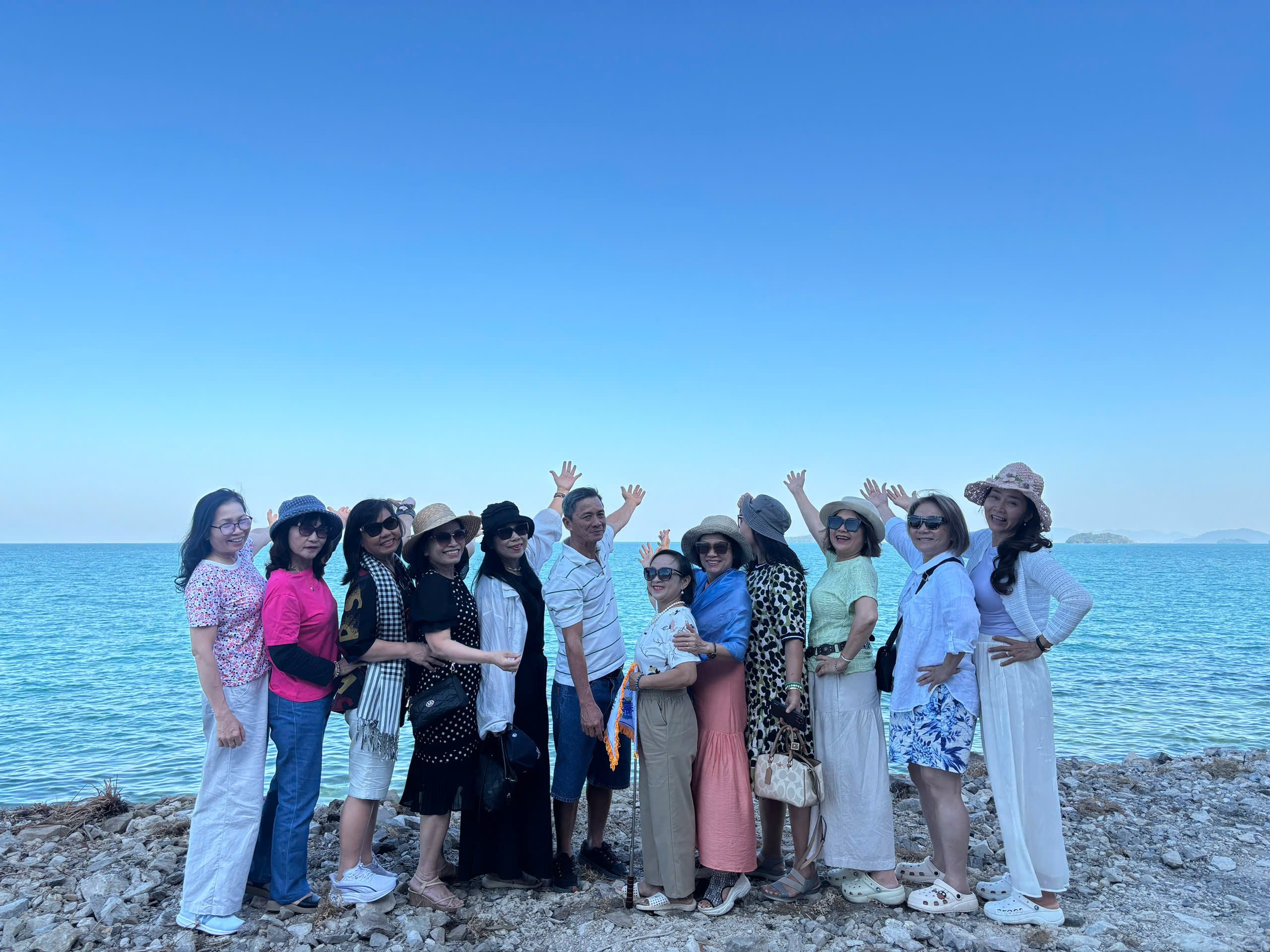 08:05 Tàu cập cảng đảo Hải Tặc, quý khách lên xe điện về điểm ăn trưa tập kết gửi đồ và checkin bãi biển Hải Tặc.