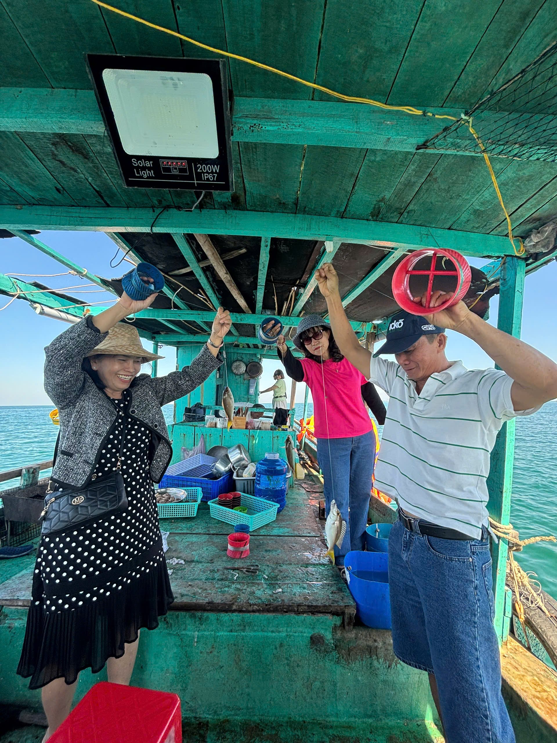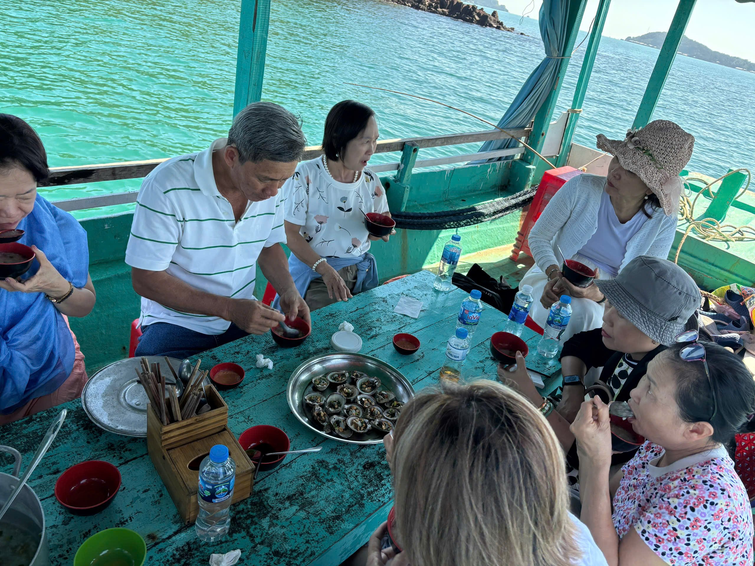 08:30 Xe điện đưa đoàn ra bến lên tàu du lịch trải nghiệm câu cá, lặn san hô biển khơi. Tại đây đoàn được thưởng thức các món ăn tươi sống với các hải sản đánh bắt được, có thợ lặn hỗ trợ bắt hải sản cho quý khách thưởng thức trên tàu.