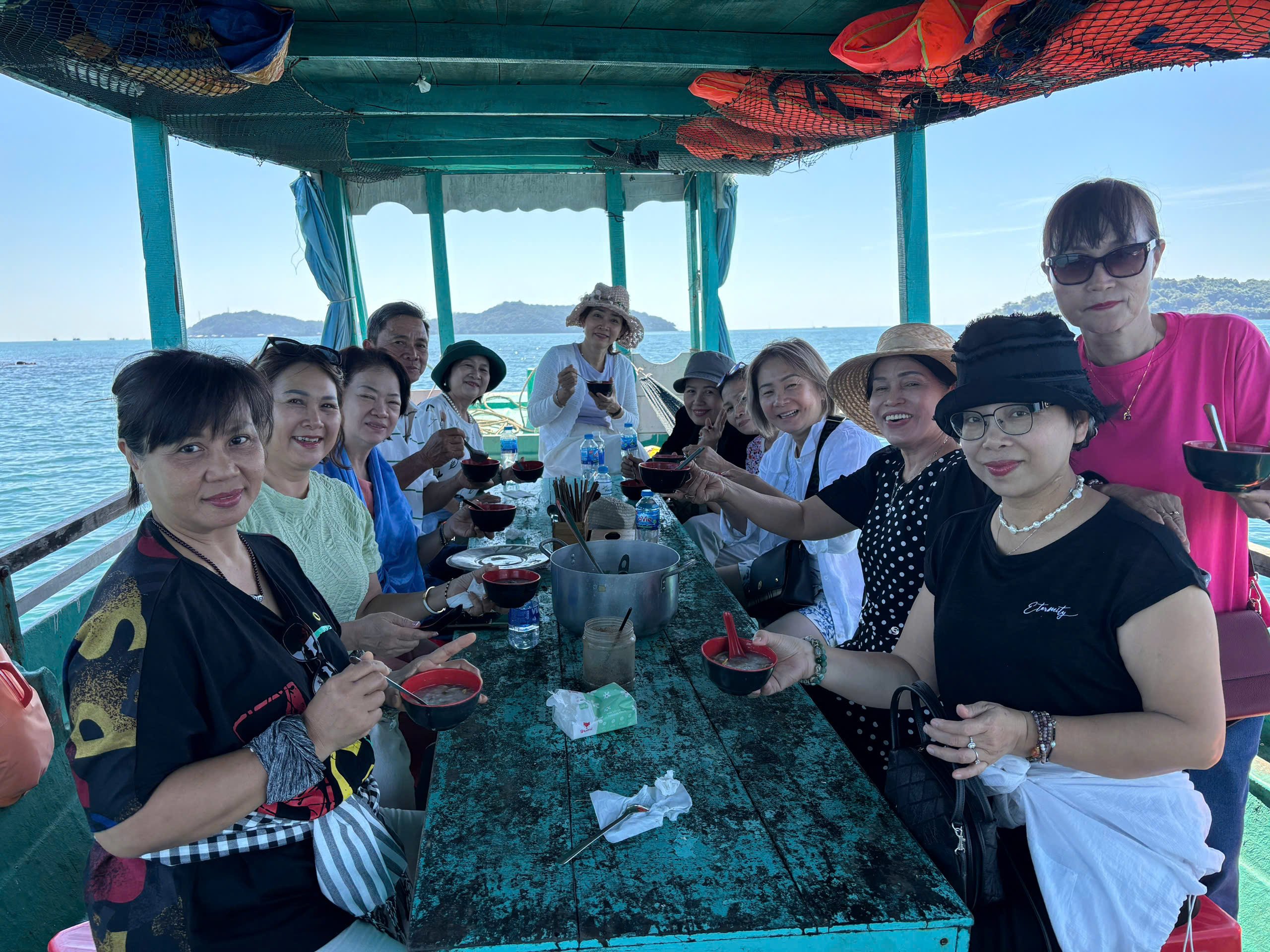 14h20 Xe đưa đoàn di chuyển ra bến tàu, HDV làm thủ tục cho lên tàu di chuyển về Hà Tiên chuyến 14h45.